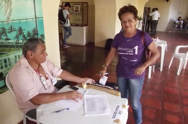 Associada votando na urna do CCH.