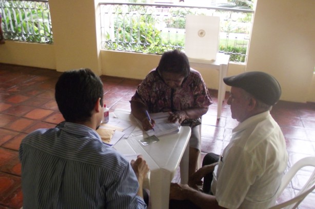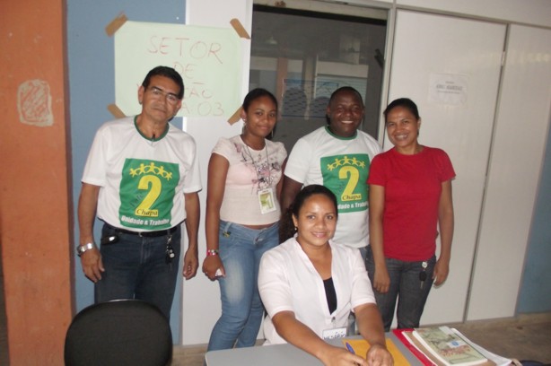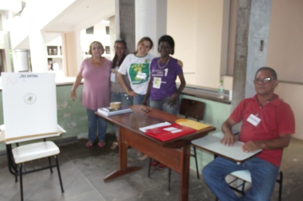 Mesários, fiscais e colaboradores na urna do CEB velho.