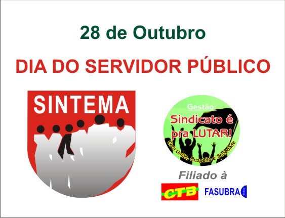 Neste dia 28 de outubro de 2015, a gestão “Sindicato é pra Lutar” que dirige o SINTEMA, parabeniza todos os servidores Técnico-administrativos em Educação, em especial, os da Universidade Federal do Maranhão – UFMA, que diariamente desenvolvem suas atividades laborais contribuindo para o avanço da universidade e da sociedade em geral, cumprindo a todo instante o dever de ser prestativo e educado, mesmo com todas as adversidades dispostas no ambiente de trabalho.