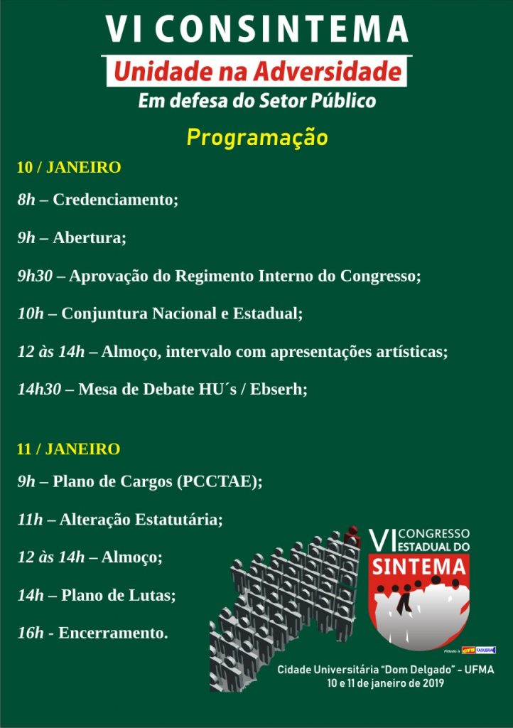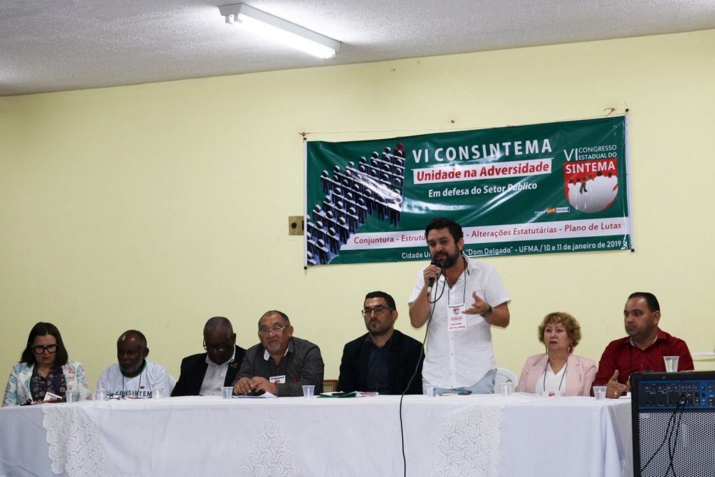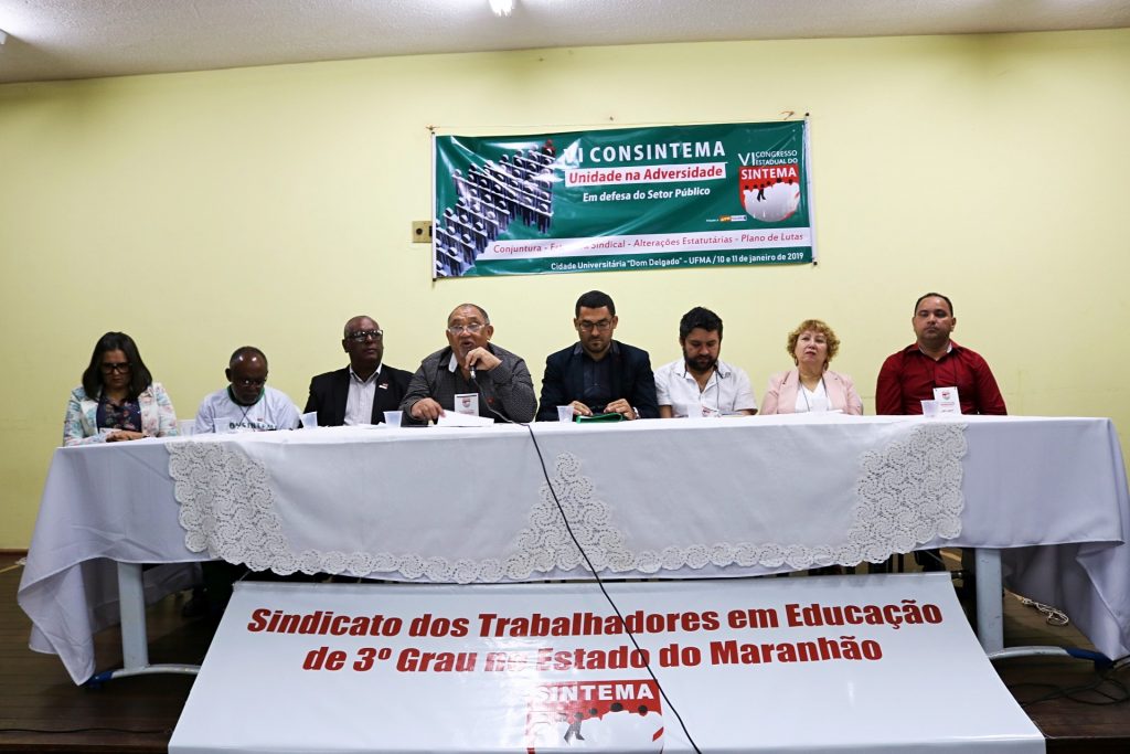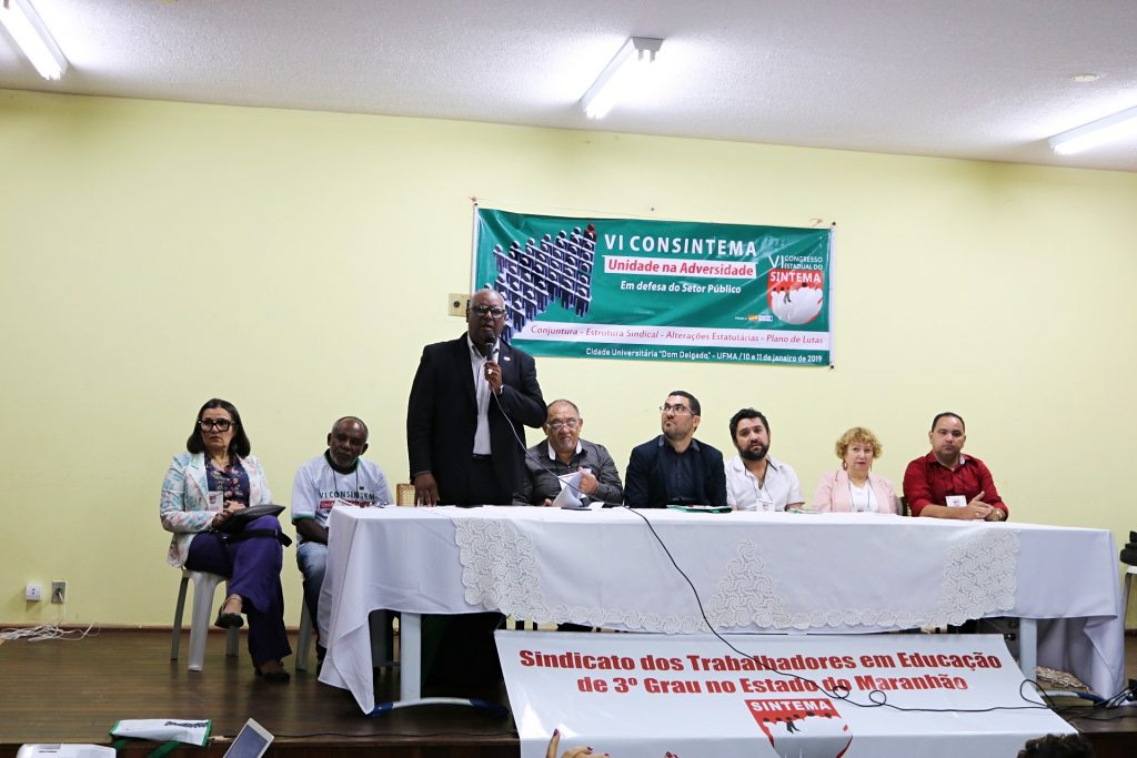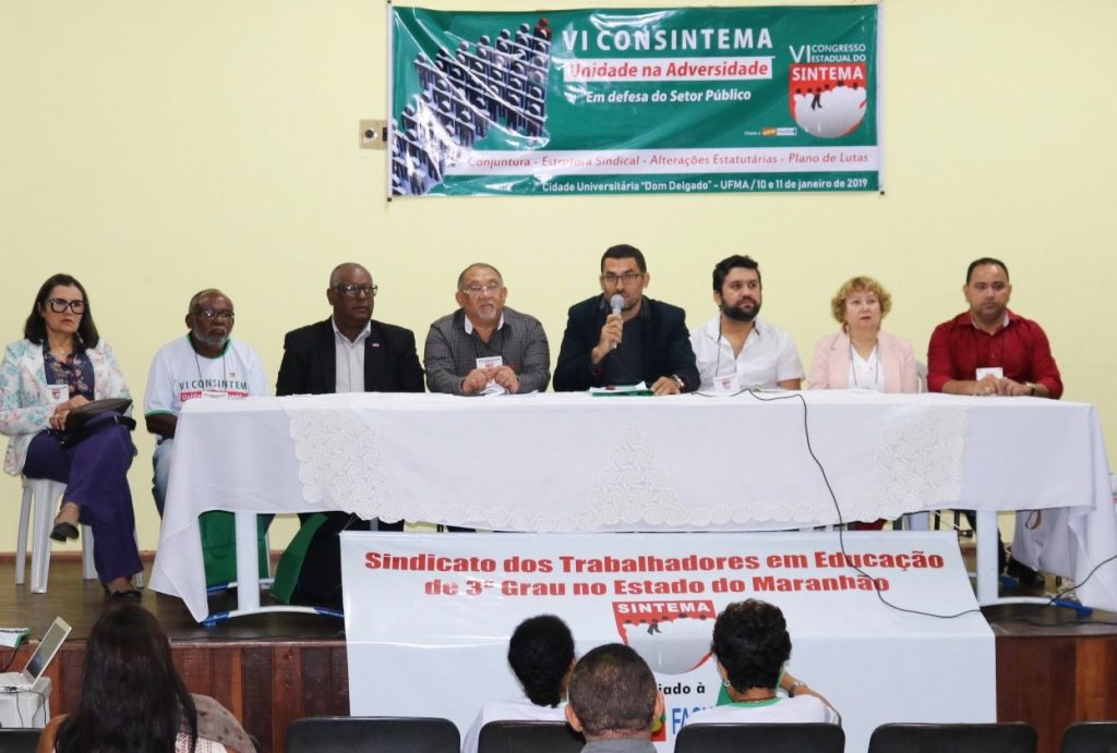 O VI Congresso Estadual do Sintema – CONSINTEMA foi aberto na manhã desta quinta-feira, dia 10 de janeiro, no auditório Cônego Ribamar Carvalho, Cidade Universitária da UFMA. O evento, é realizado pelo Sindicato dos Trabalhadores em Educação de 3º Grau no Estado do Maranhão – SINTEMA, sindicato da categoria. Autoridades e lideranças sindicais prestigiaram a abertura, e conclamaram os delegados e delegadas presentes a unir forças em defesa dos trabalhadores, da Educação Pública, e do país.