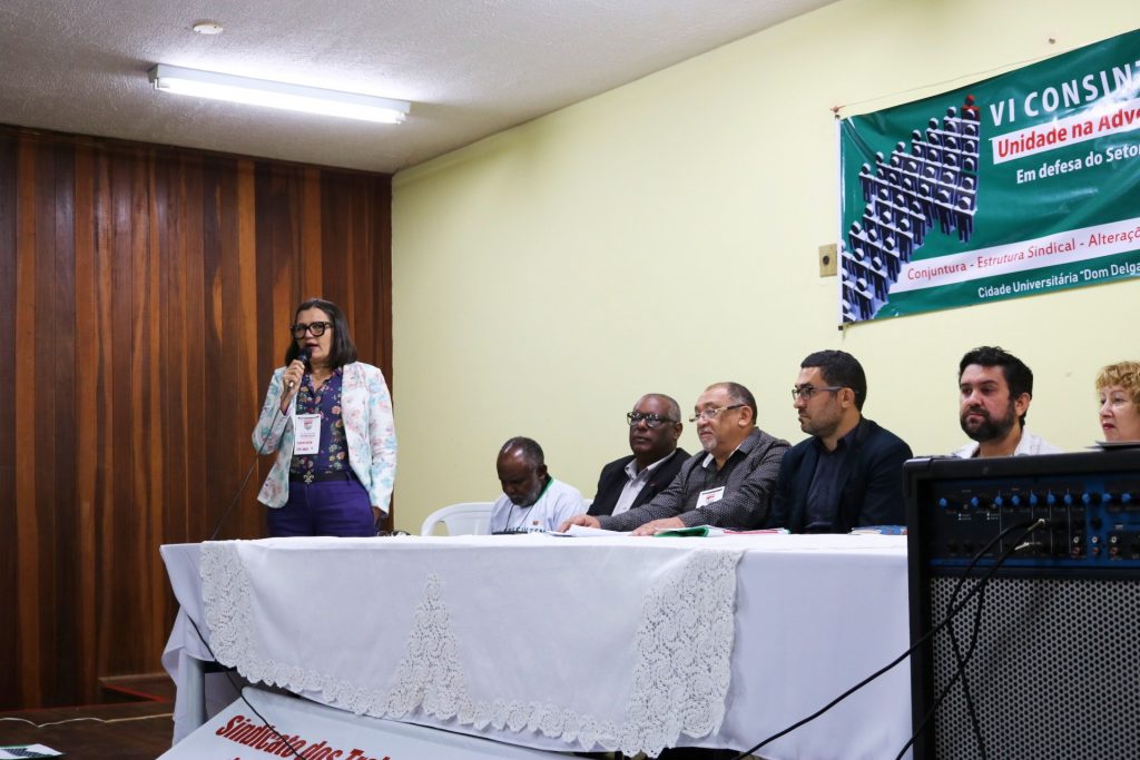 Ademar Sena saudou, em nome da categoria, todas as autoridades e lideranças presentes. “Hoje iniciamos a sexta edição do nosso espaço maior de debate: o Consintema, que ocorre em um período difícil da luta dos trabalhadores brasileiros”, lembrou.