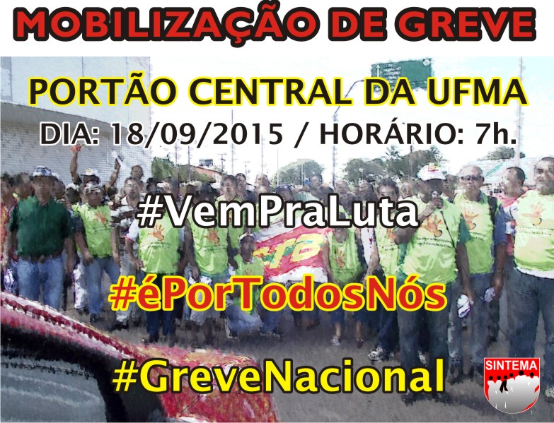O COMANDO LOCAL DE GREVE – CLG/SINTEMA, CONVOCA TODA A CATEGORIA PARA A MOBILIZAÇÃO DOS TRABALHADORES EM EDUCAÇÃO DA UFMA, NO PORTÃO CENTRAL DA UFMA, DIA 18 DE SETEMBRO, ÀS 7 HORAS DA MANHÃ.