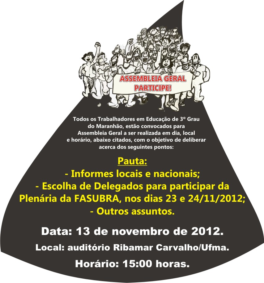 A diretoria do Sintema convoca toda a categoria, para participar da assembleia geral no dia 13 de novembro de 2012. Confira a convocatória: