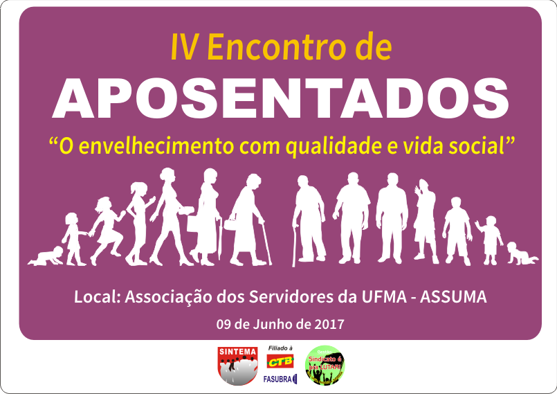 O Sintema – Gestão Sindicato é pra Lutar, realiza no próximo dia 9 de junho, sexta-feira, a quarta edição do Encontro de Aposentados – com o tema “O Envelhecimento com Qualidade e Vida Social”. O evento acontece na Associação dos Servidores da UFMA, e conta com uma programação especial para os participantes.