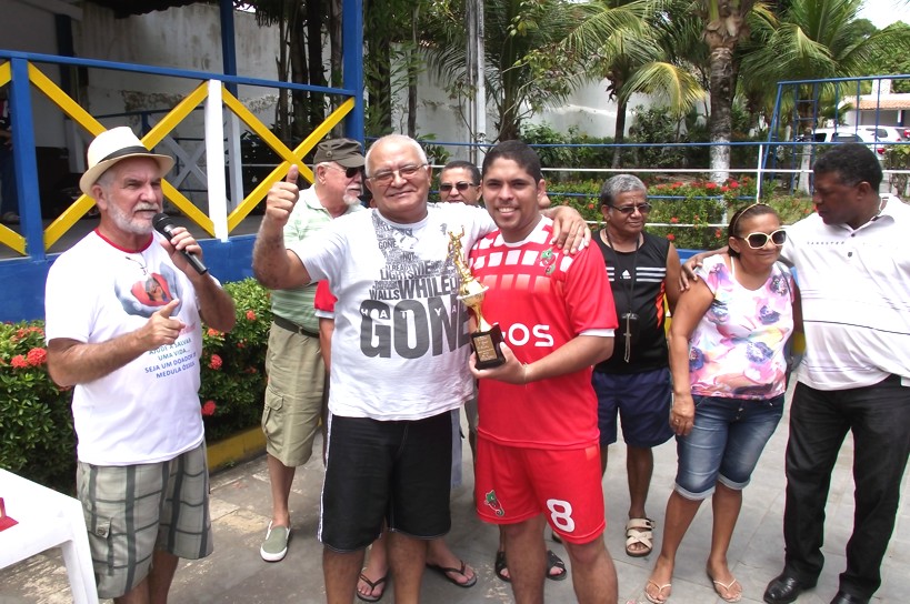 Capitão da Equipe LOGOS recebe troféu das mãos do vice-presidente do Sintema, Domingos Ferreira.[/caption]