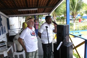 Mariano Azevedo (Sintema) ao lado de Silva Gonsioroski (Assuma) dá as boas vindas aos Servidores e suas famílias.[/caption]