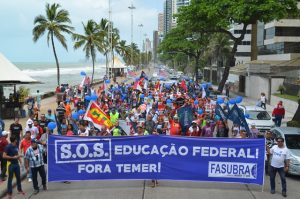 A FASUBRA conclamou a sociedade para se unirem em defesa do patrimônio público, da universidade brasileira, em defesa das conquistas e da carreira dos trabalhadores técnico-administrativos, contra a reforma da previdência e contra a reforma trabalhista, que mesmo após aprovação pode ser revogada. “Não vamos deixar o processo de vendas desse país seguir da forma que está sendo feito, estamos aqui para barrar os ataques ao Brasil, para defender a educação pública”. Os gritos de “Fora Temer” e “Fora Mendonça” finalizaram o ato.